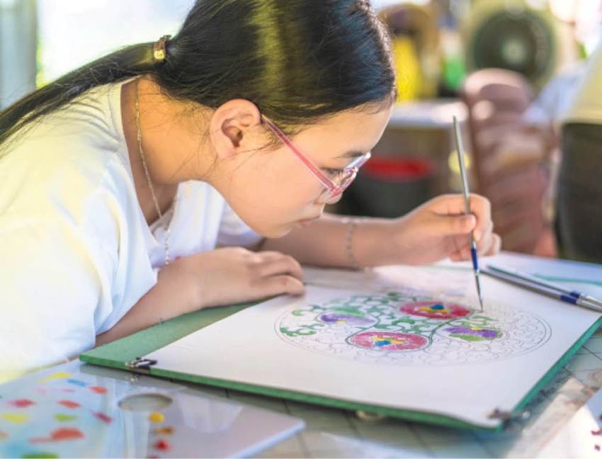 Các em học sinh tham gia những hoạt động tìm hiểu về di sản văn hóa Huế Ảnh: Bảo Minh