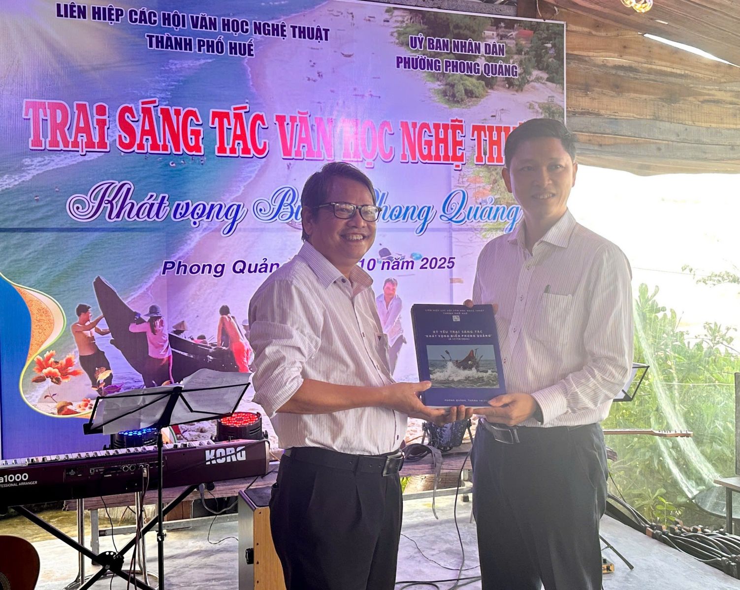Báo cáo tại buổi bế mạc trại, nhà thơ Lê Đức Thành - Trại trưởng trại sáng tác cho biết, trại sáng tác VHNT "Khát vọng biển Phong Quảng" năm 2025 diễn ra từ ngày 08/10 đến ngày 17/10/2025, dành cho 14 văn nghệ sĩ thuộc 05 hội chuyên ngành: Nhà văn, Âm nhạc, Nhiếp ảnh, Mỹ thuật và Văn nghệ dân gian. Chỉ trong 10 ngày ngắn ngủi, các văn nghệ sĩ đã rong ruổi trên khắp các nẻo đường của Phong Quảng, chìm đắm trong màu biển xanh hoang sơ và cát trắng, với những cơn mưa chiều mùa biển động để cho ra đời những tác phẩm văn học nghệ thuật mang đậm dấu ấn của "Khát vọng biển Phong Quảng".