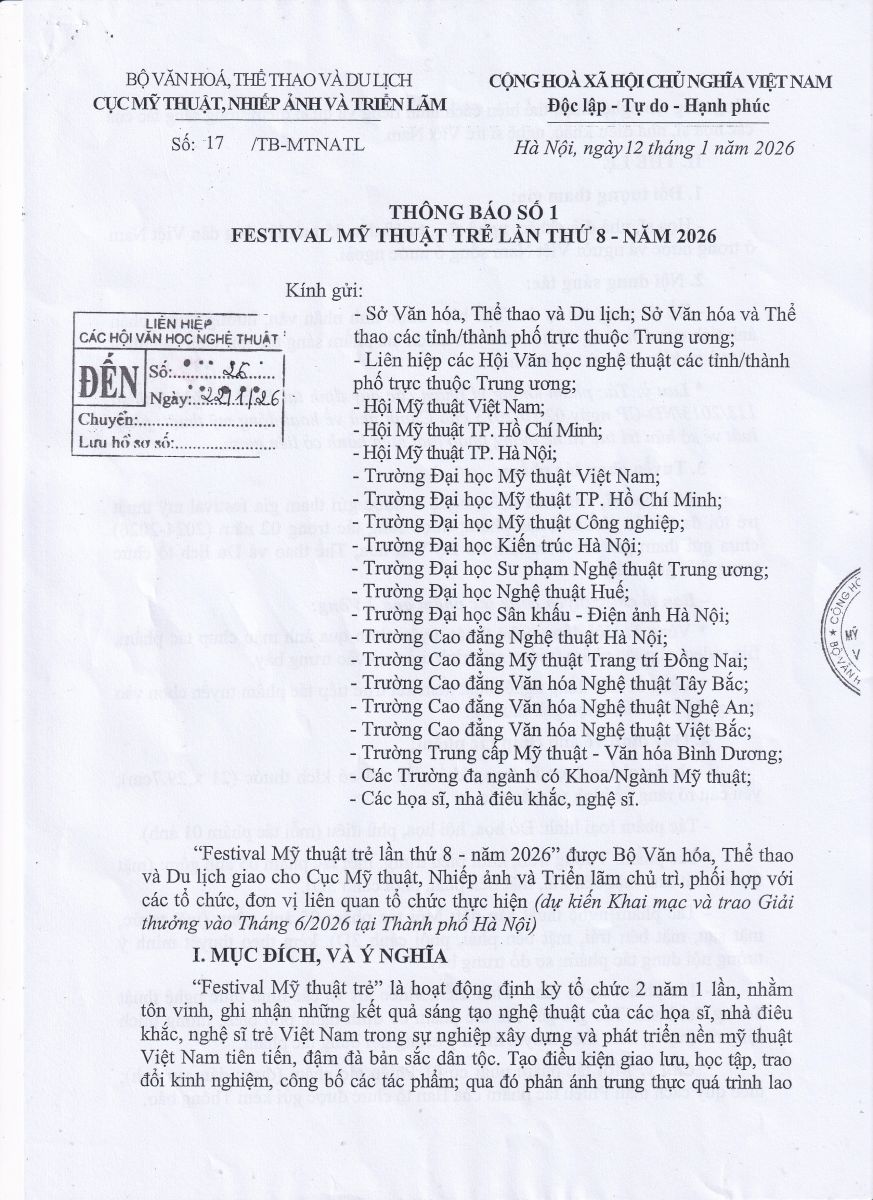 Thông báo về Festival Mỹ thuật Trẻ Lần thứ 8 năm 2026