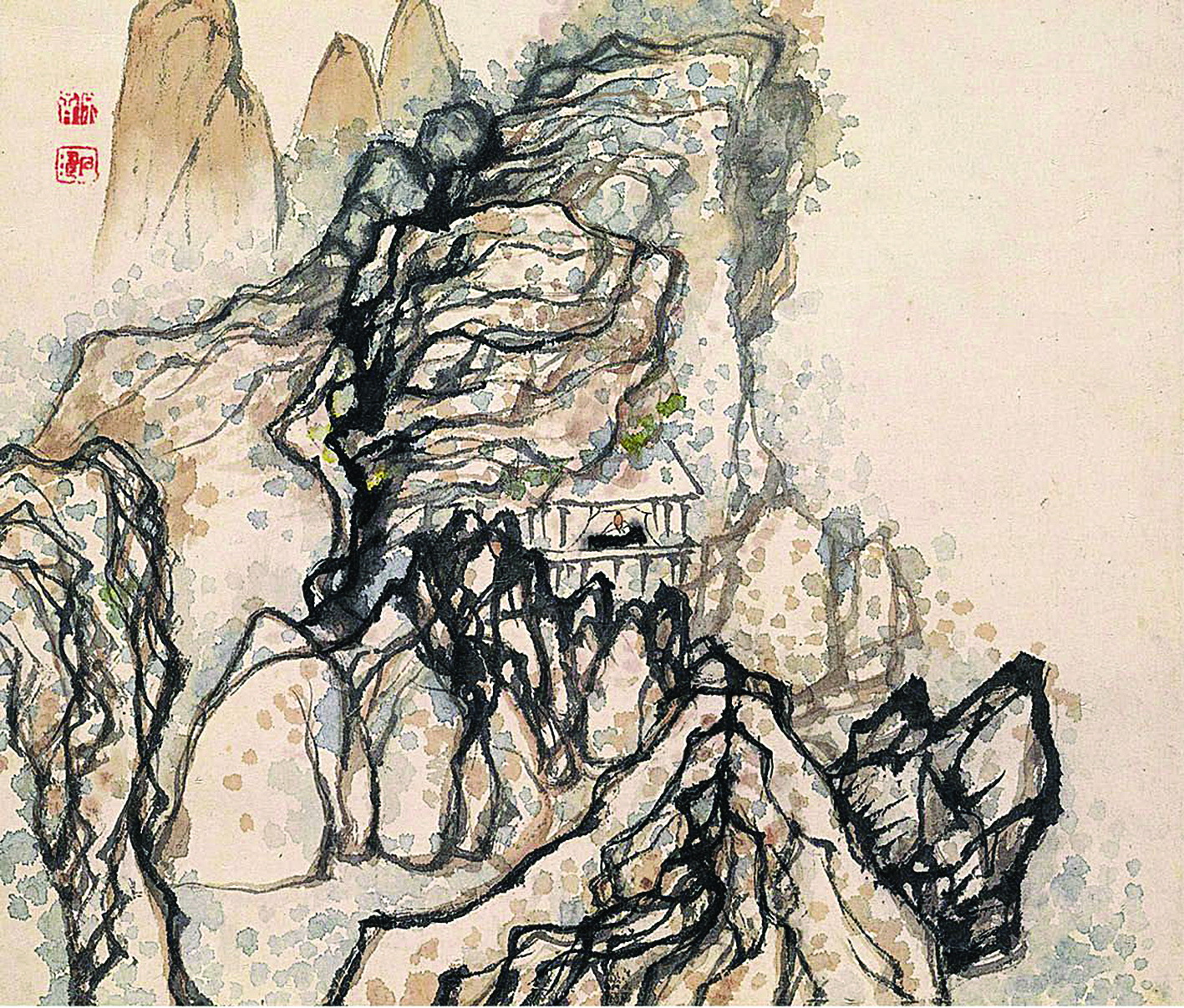 Tranh Thạch Đào (1641-1717), Sơn thủy, màu trên giấy, 24x28cm. Ảnh chụp từ James Cahill "La Penture Chinoise", Edictions d'Art Albert Skira, Geneve, 1960