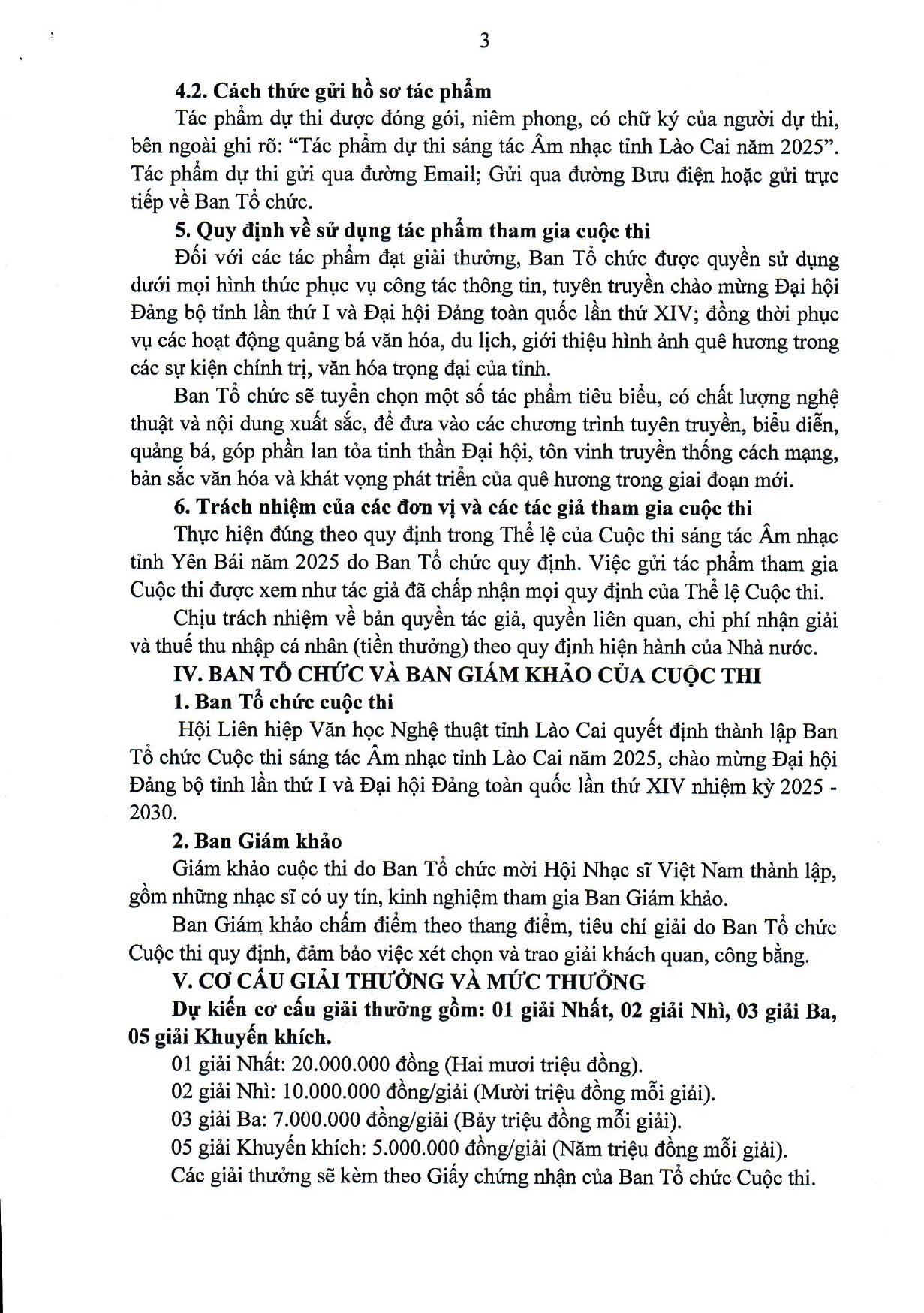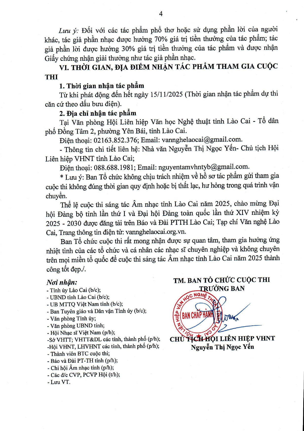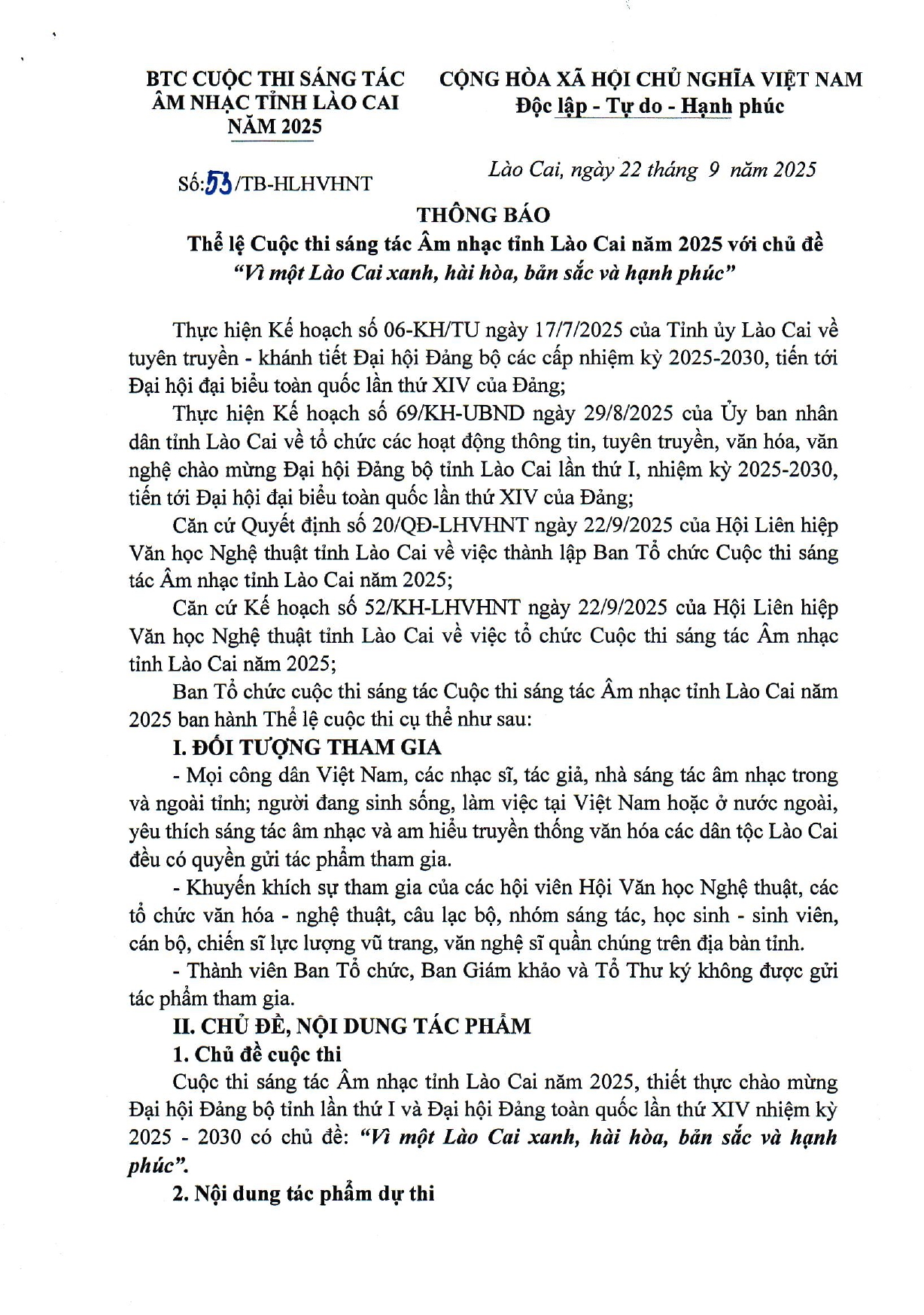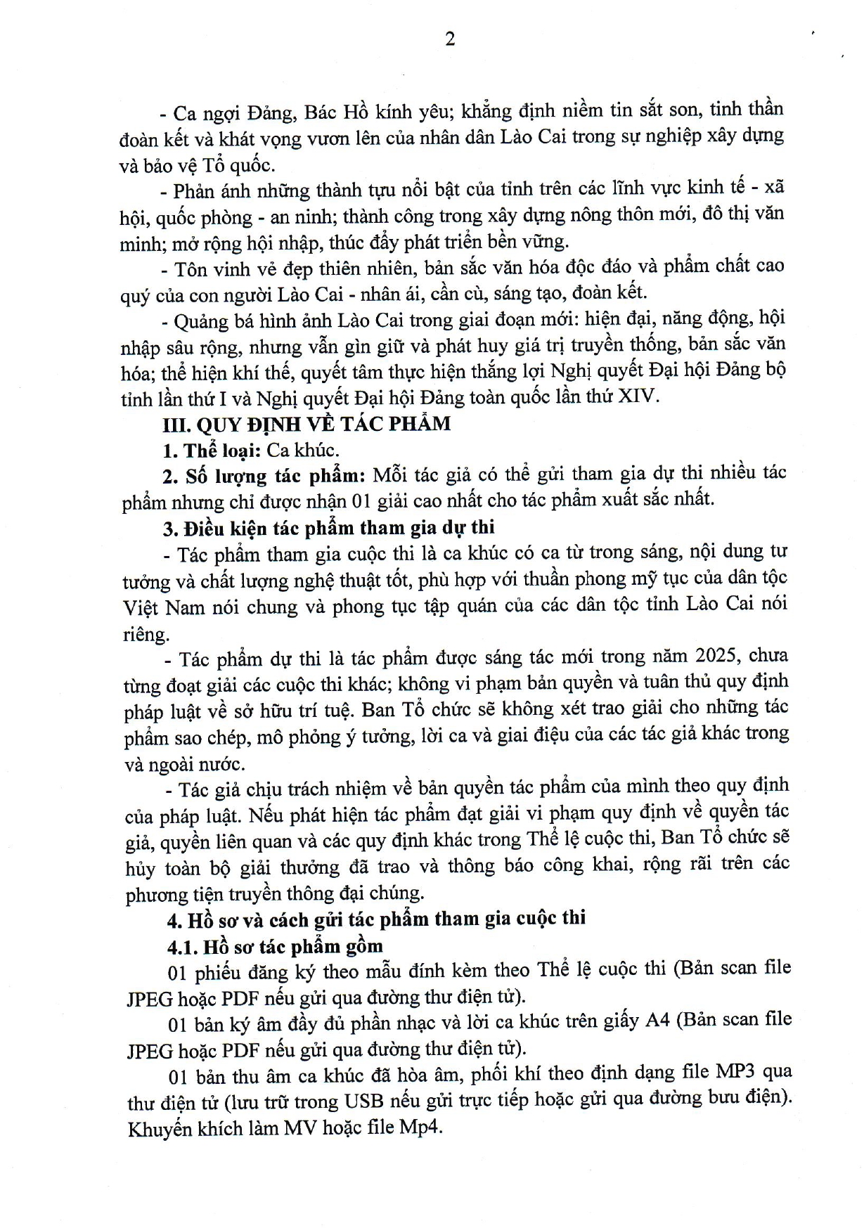 Hội Liên hiệp Văn học Nghệ thuật tỉnh Lào Cai tổ chức Cuộc thi sáng tác Âm nhạc tỉnh Lào Cai năm 2025 với chủ đề "Vì một Lào Cai xanh, hài hòa, bản sắc và hạnh phúc".