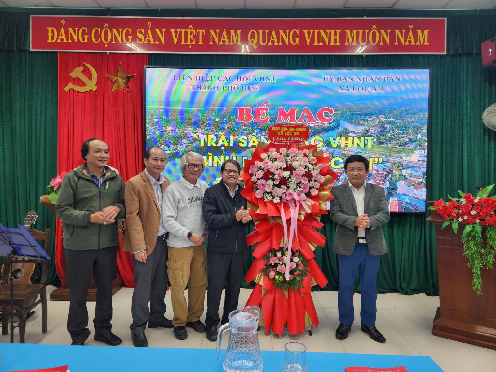 Đại diện UBND xã Lộc An tặng hoa chúc mừng trại sáng tác diễn ra thành công tốt đẹp