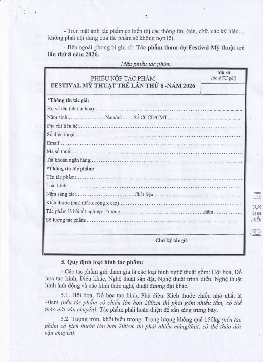 Thông báo về Festival Mỹ thuật Trẻ Lần thứ 8 năm 2026